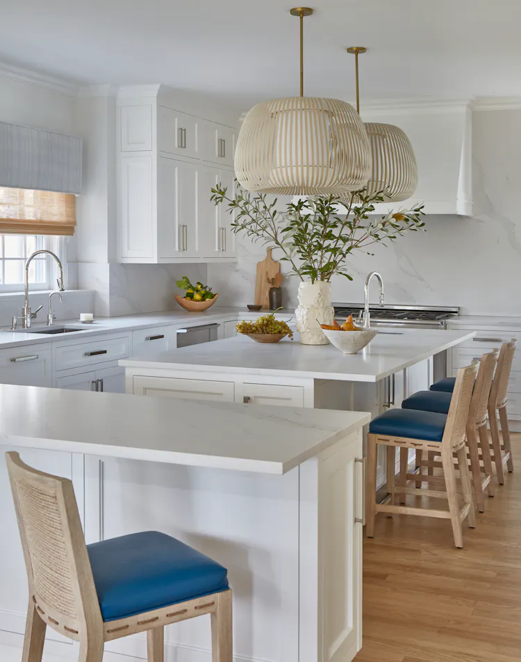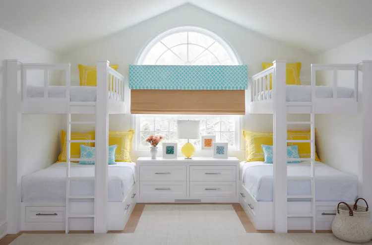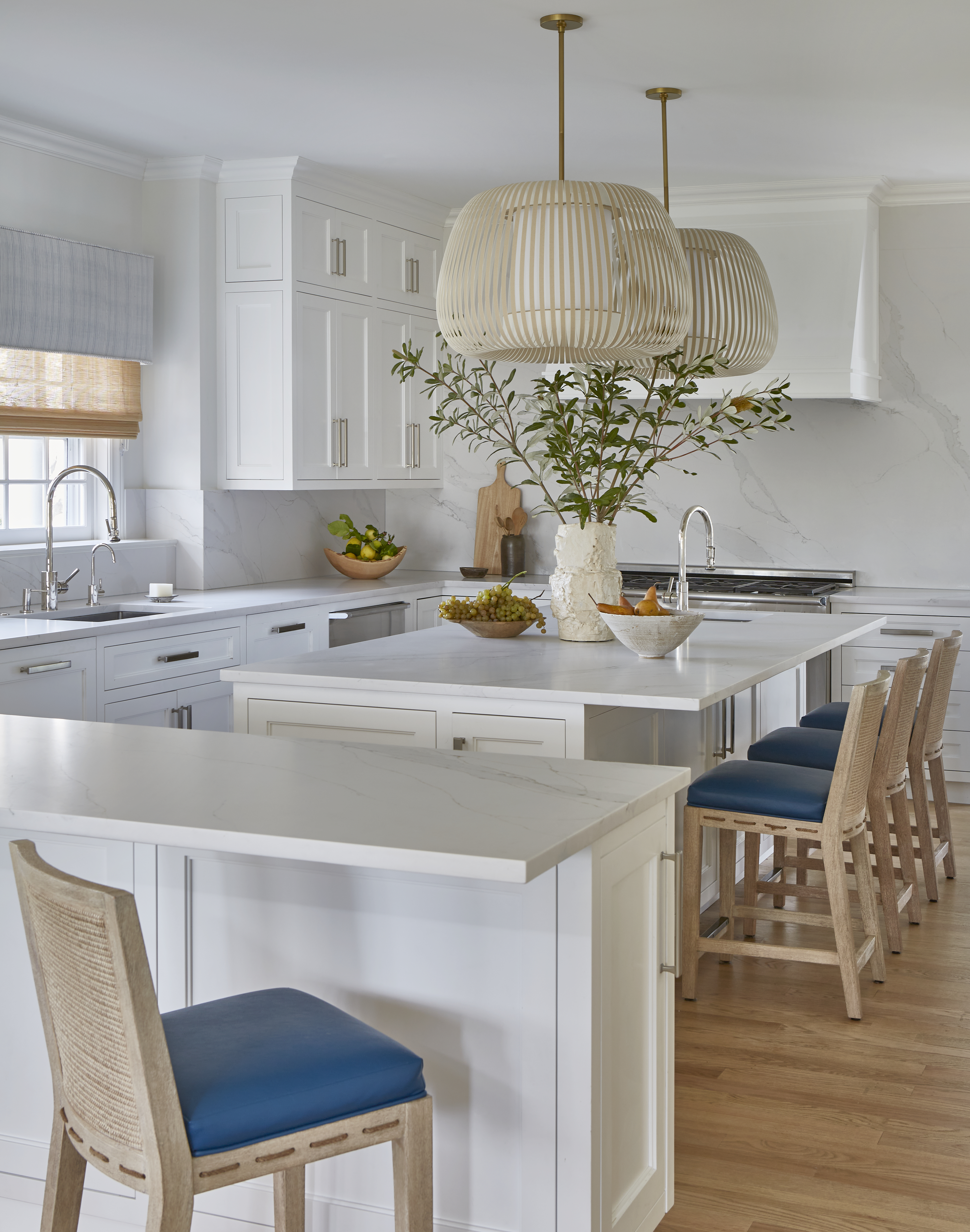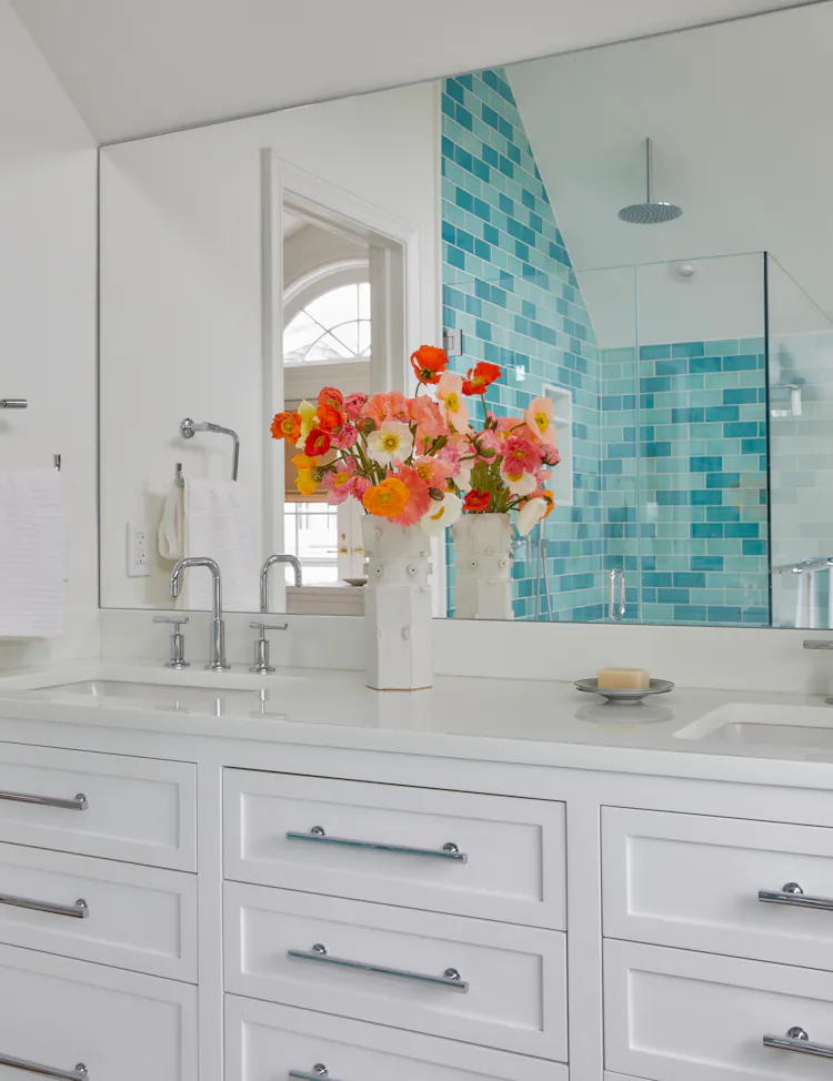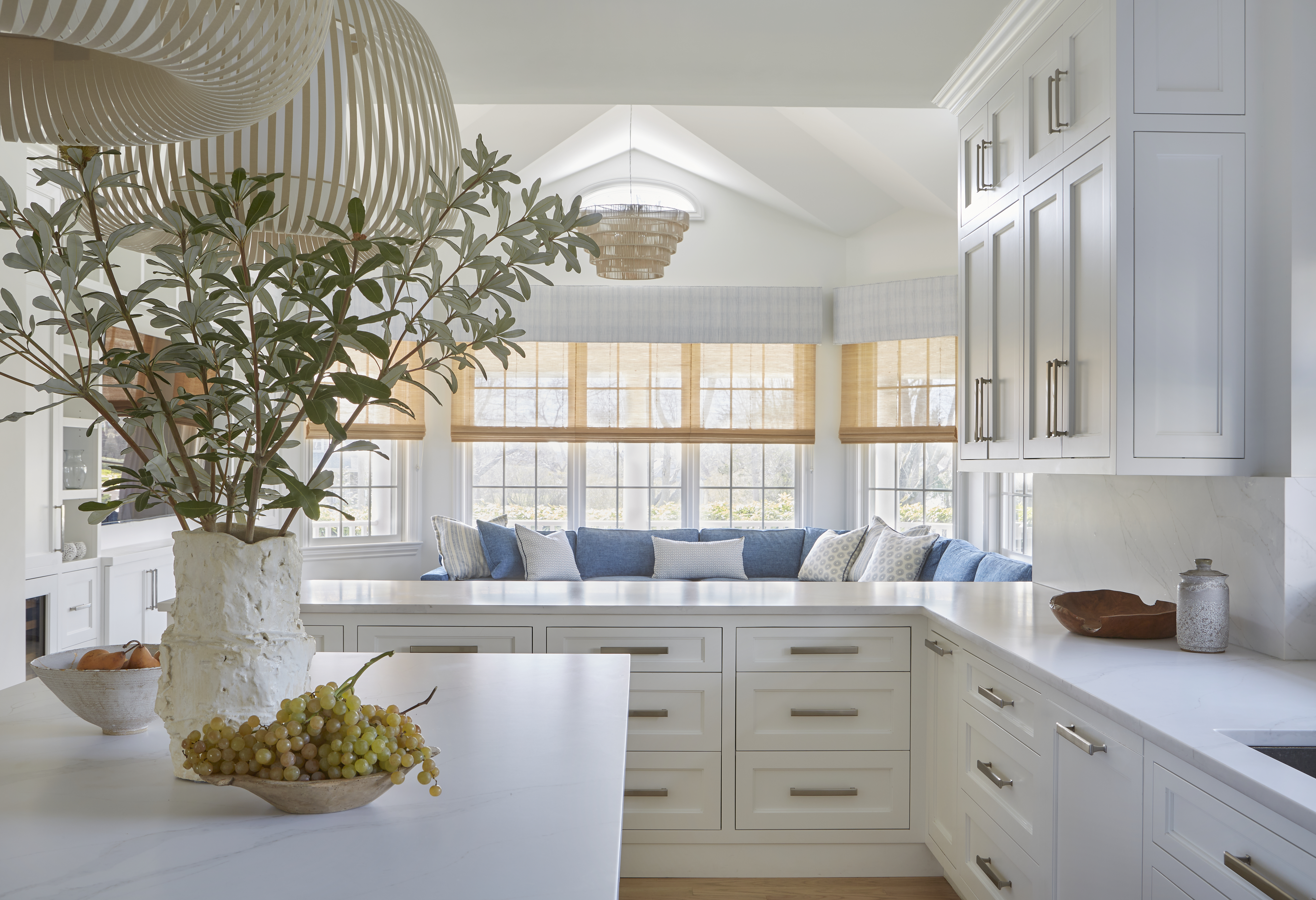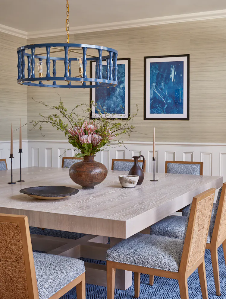 K.A. Murphy Interiors created a summer sanctuary for a West Coast family seeking a permanent home base in the Hamptons for gatherings with their whole family. Designed to host multiple generations, the home balances serenity and function, with standout features including a custom 12-seat cerused oak dining table, an octagonal lounge and custom sofa, and a cheerful bunkroom with built-in beds and playful tiles. From the grand foyer with its bold custom rug to the wraparound porch and statement fixtures, every detail was chosen to bring people together. The result is an elegant yet welcoming escape: an airy, light-filled haven designed for summers of connection and lasting memories.